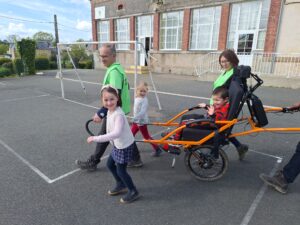 Quant aux enfants de la maternelle volontaires, ils pouvaient s’installer à bord de la Joëlette et bénéficier d’une petite promenade autour de la cour. Les enfants qui ont essayé ont pris du plaisir. Ils avaient même droit, s’ils le souhaitaient à des secousses pour simuler la randonnée parfois périlleuse.