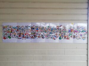 Les enfants ont ensuite reconstitué la fresque finale en mettant bout à bout tous les coloriages de chaque groupe.