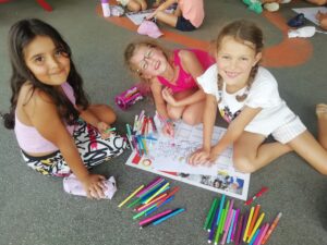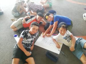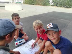 Ils se sont mélangés par tranche d’âge et ont réalisé un coloriage collaboratif.
