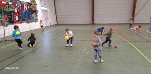 Au programme des maternelles : manipulation du ballon, parcours de motricité, tirer et viser.