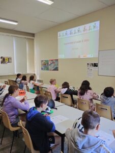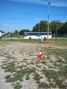 Lundi 3 juin, les élèves de CM1 et CM2 se sont rendus à la piste d’éducation routière à Laval. Les élèves ont roulé sur une piste avec des feux tricolores, des sens interdits, des priorités à droite et des giratoires. Cet exercice s’est montré particulièrement difficile. Ensuite les enfants ont testé leur équilibre en effectuant un parcours ponctué de slaloms et d’obstacles. Enfin, pour terminer la matinée, les élèves ont répondu à 10 questions concernant des panneaux routiers et des éléments de sécurité.