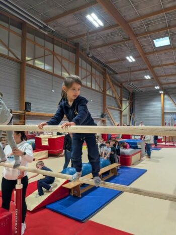 Après les séances d’initiation à la pratique de la gymnastique durant la 3ème période, les enfants de maternelle et CP se sont rendus au gymnase de Bourny à LAVAL afin de pratiquer cette discipline dans les conditions réelles. CELINE et LEXANDRE, les 2 animateurs du club nous ont concocté un parcours très complet après un temps d’échauffement : trampoline, barres asymétriques, barres parallèles, plans inclinés, cheval d’arçon, anneaux, tapis de réception…