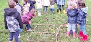 Les enfants ont d’abord réalisé un tableau de 4 cases avec les bâtons ou petites branches trouvés au sol.
