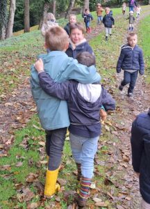 Durant la matinée, nous avons eu l’occasion d’observer les champignons, différents arbres, notamment, leur diamètre. Il y a de très gros troncs et d’autres plus fins. Nous avons aussi marché dans les feuilles mortes avec beaucoup de plaisir !