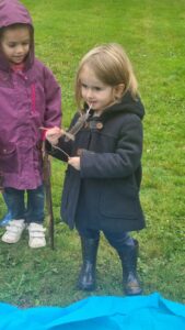 Une petite collation a permis de recharger les batteries avant de passer à un petit moment musical pendant lequel chaque enfant a pu proposer un rythme. Pour se faire, nous avons tous ramassé deux bâtons et à tour de rôle, nous offrions aux copains notre production sonore.