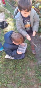 midi, les enfants de Grande section sont allés à la conquête des fourmis, du côté