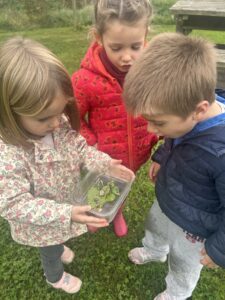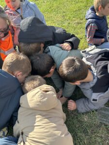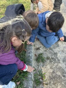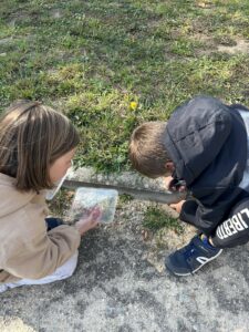 Dans la cour de l’école, les enfants s’émerveillent devant les petites bêtes qui y