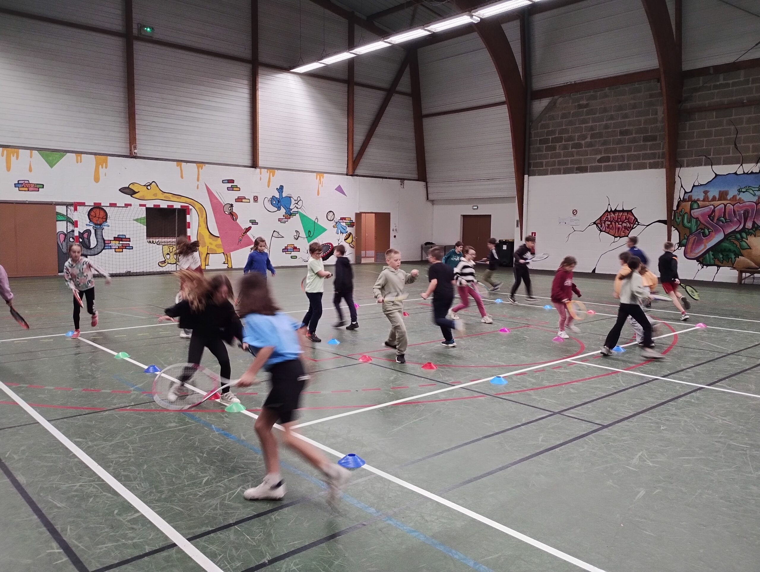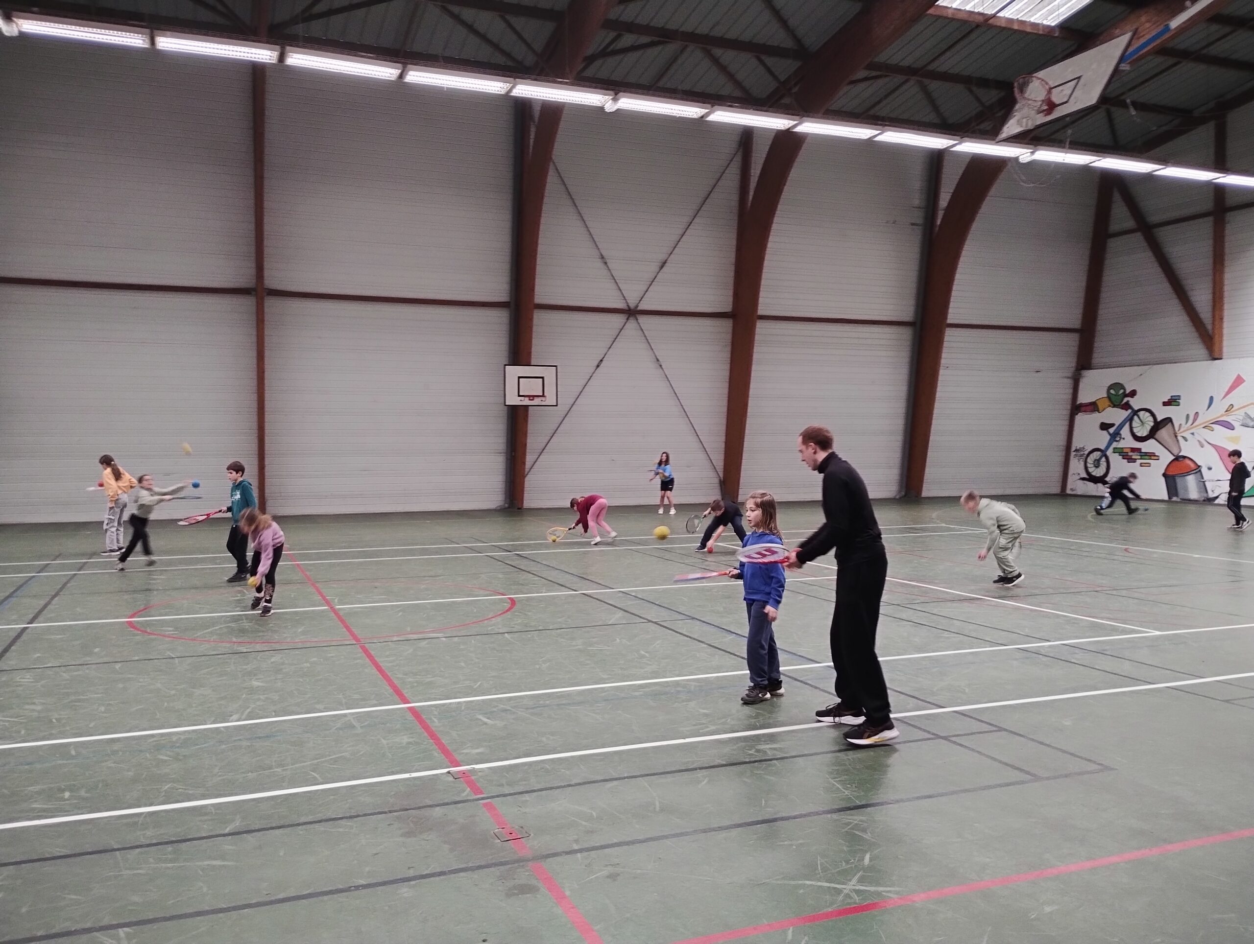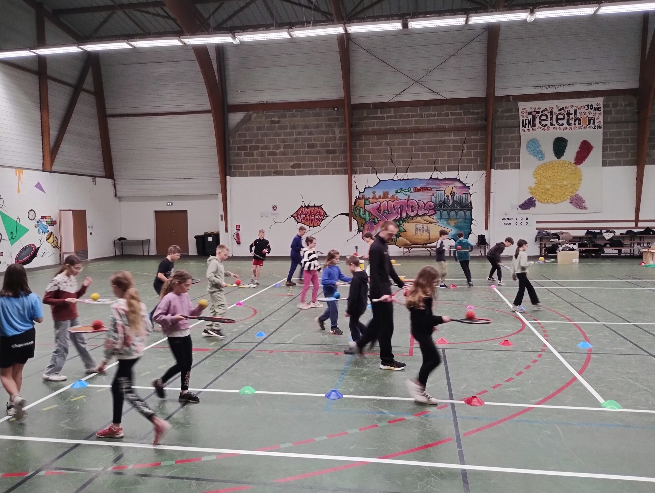 Depuis le début de la période, les classes de CE et CM s’essaient au tennis sous la direction de Simon, éducateur du club de Saint Berthevin. Chaque vendredi après-midi, les élèves se rendent à la salle de des sports. Les premières séances sont surtout basées sur le maniement de la balle et la maitrise afin de faire des échanges.