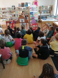 Les enfants de maternelle ont commencé par un temps de raconte-tapis et ils ont ensuite pu choisir leur livre.